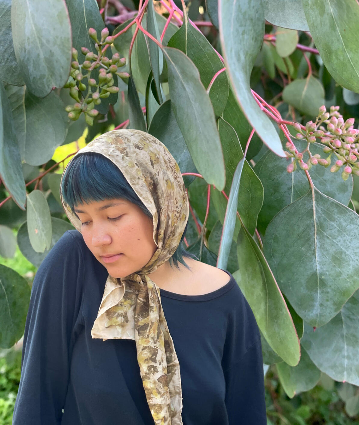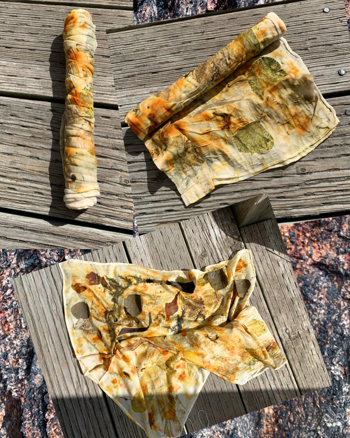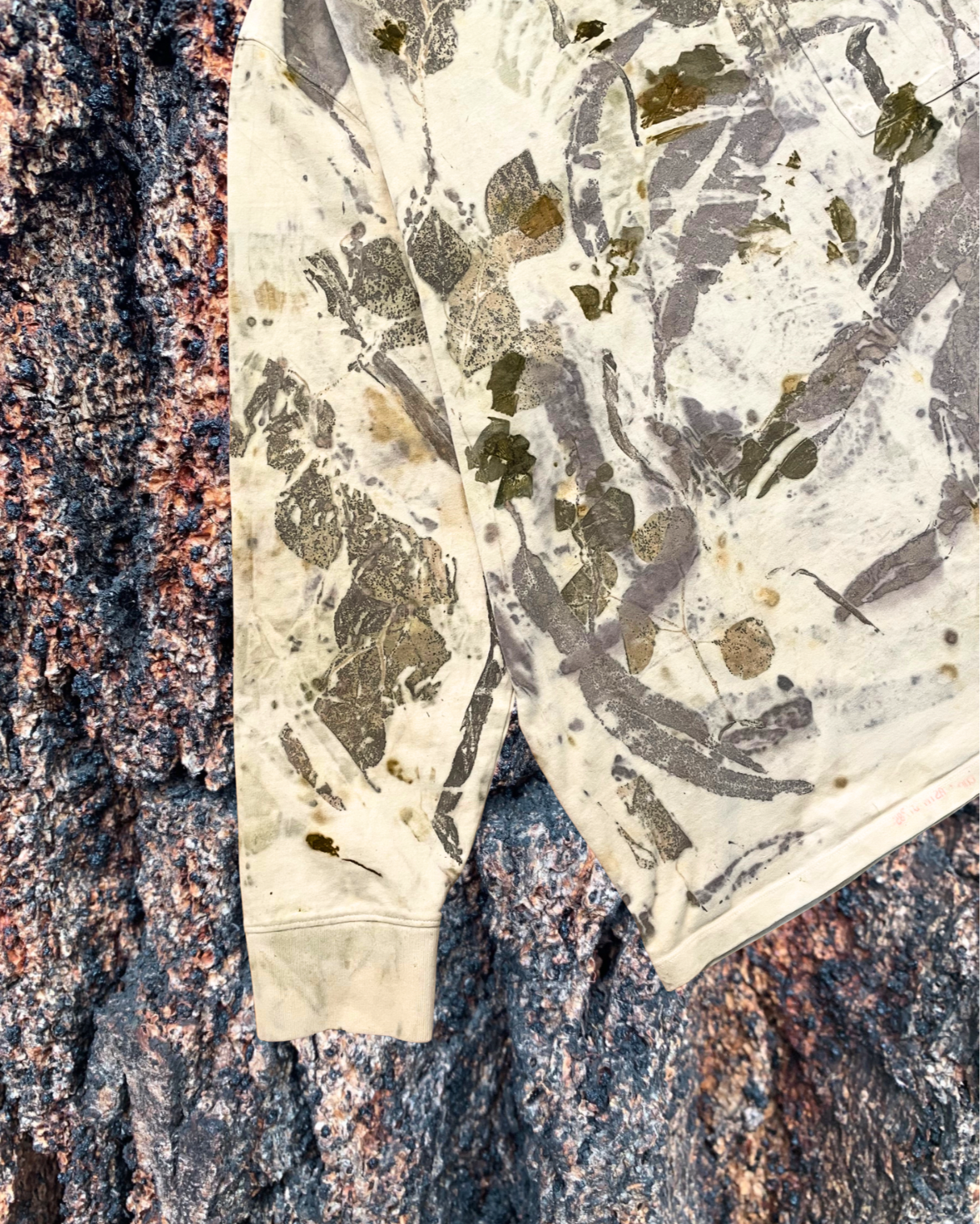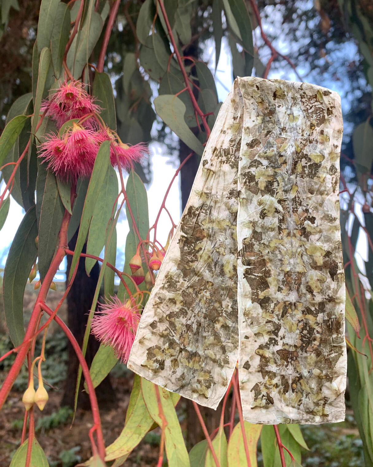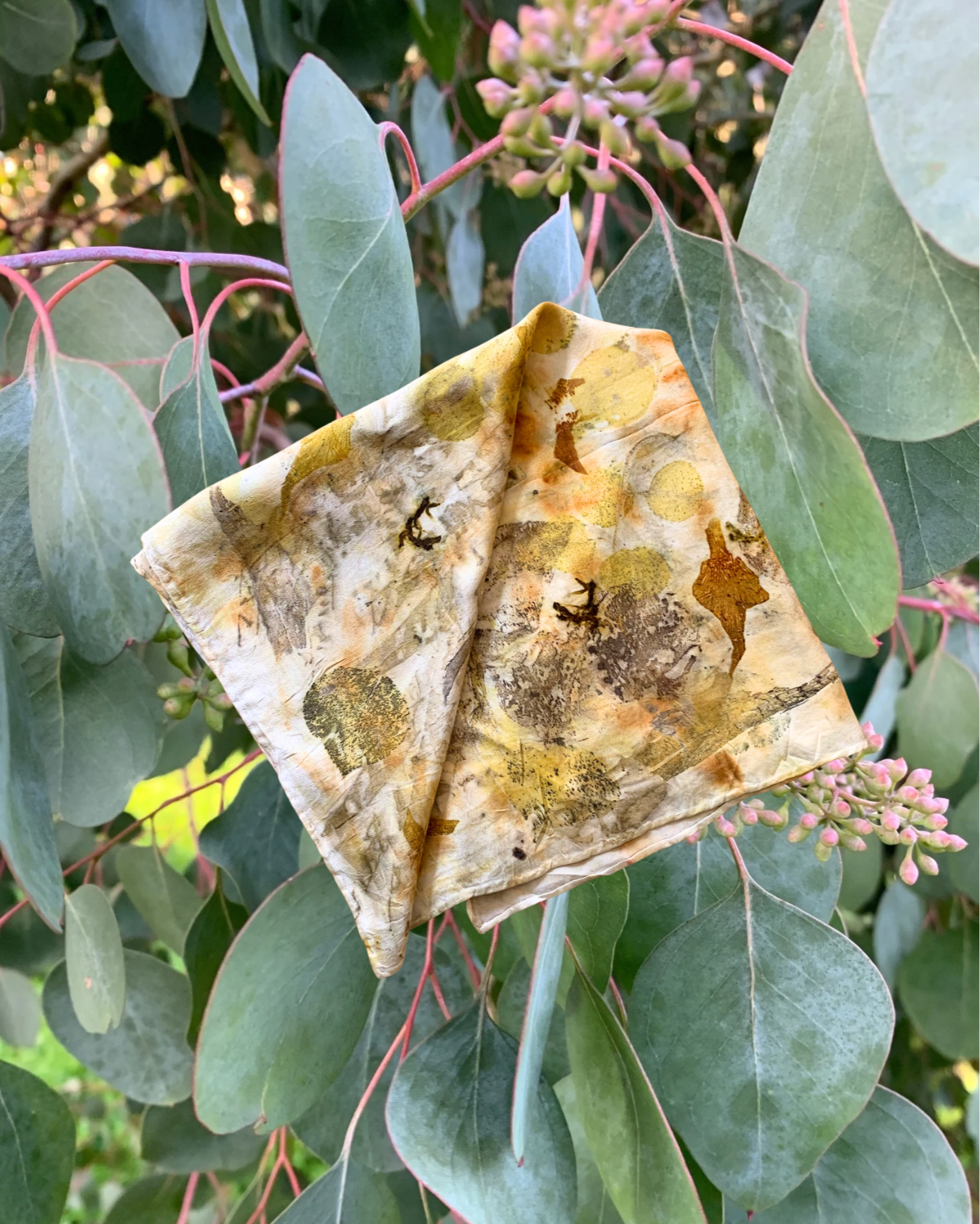 DARIA MAKES ECO PRINT CAMO FROM INVASIVE BAY AREA PLANTS (BLACKBERRY, SOURGRASS AND EUCALYPTUS) + UPCYCLED CLOTHING.